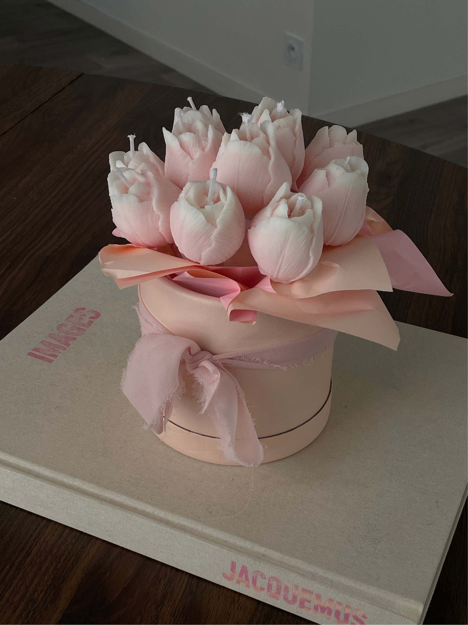 Notre box rose contient une dizaine de bougies artisanales en forme de tulipes roses. Chaque bougie est modelée à la main dans notre atelier français. Un bouquet élégant qui illumine votre intérieur et se conserve dans le temps.